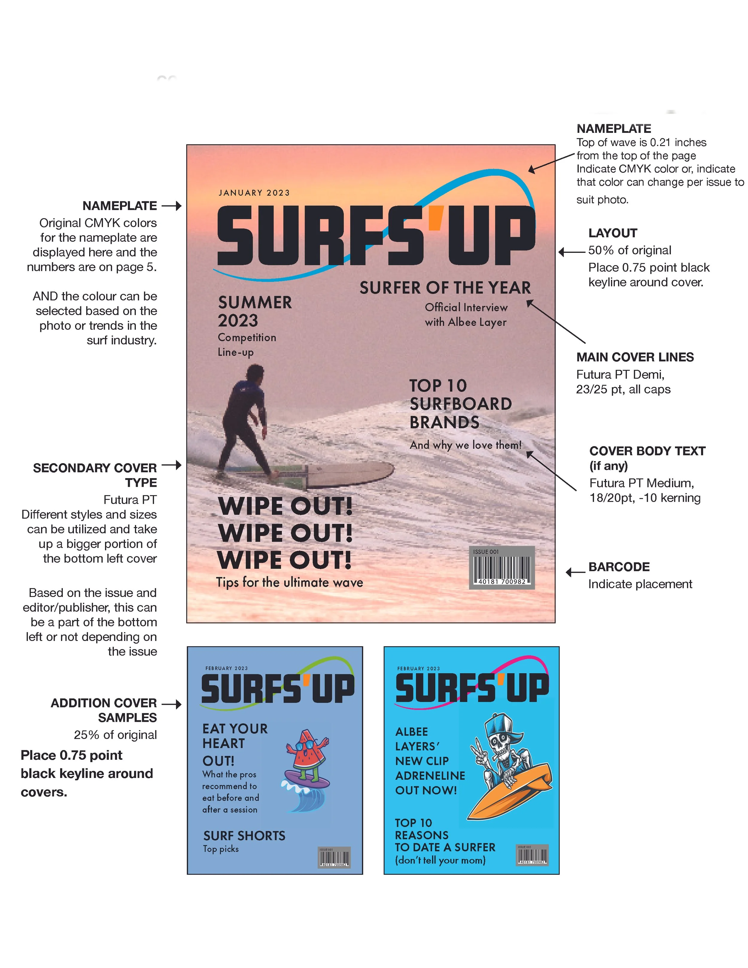 An editorial for millennials interested in surfing; beginner to expert. Just like it's name, it does not take an expert surfer to understand what it means. Surf’s Up is a lifestyle and entertainment magazine whose articles range from interviews with pro surfers, rare surf photography, and surf community content. Surf’s Up spreads the excitement of this board sport that is dedicated to catching every wave!